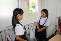 2019年10月21日 11時00分5年生の教室では、地震・台風・土砂災害について、グループ発表の準備をしていました。どうしたら「制限時間内に、わかりやすく」発表することができるか話し合っていました。