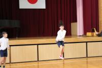 体育館では、低学年「二重とび」、中学年「はやぶさ」、高学年「ゼロせん」が20回以上できる名人芸を披露していました。先生も頑張っていました。